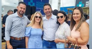 Prefeito Cléber, ao centro, ladeado pela secretária Ludelça e vereador Daniel (e) e as vereadoras Jacira e Lurdinha, na inauguração do Hospital Regional de Dourados