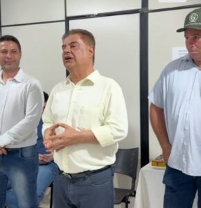Senador Nelsinho, entre o prefeito Cléber e vice Oncinha, destaca ativação do serviço de telemedicina em Vicentina