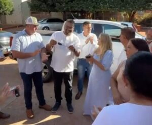 Com a presença do senador Nelsinho, presidente  do CMS, Jailson recebe chaves de veículo do prefeito Cléber, vice Oncinha e secretária Ludelça