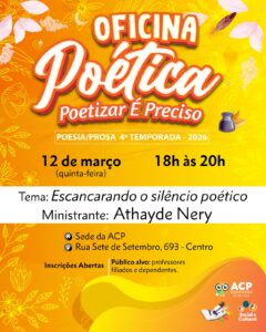 O evento acontece das 18h às 20h e é voltado especialmente para professores filiados e seus dependentes. É uma oportunidade de ouvir de perto quem entende de poesia como poucos e aprender a enxergar o mundo com esse olhar apurado e inteligente que é marca registrada de Athayde.
