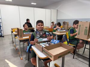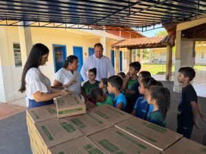 Com admiração e encantamento, estudantes recebem material escolar em Vicentina