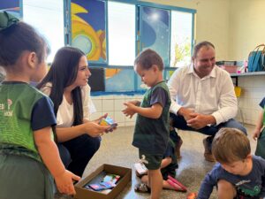 Junto com o vice-prefeito Eduardo Oncinha e da secretária de Educação, Aline Lopes, Érica afirmou que a entrega do material escolar representa o cuidado, incentivo e investimento no aprendizado das crianças vicentinense. O vice Oncinha completou dizendo que o momento reforça o compromisso da gestão com uma educação de qualidade, estruturada e cada vez mais forte.
