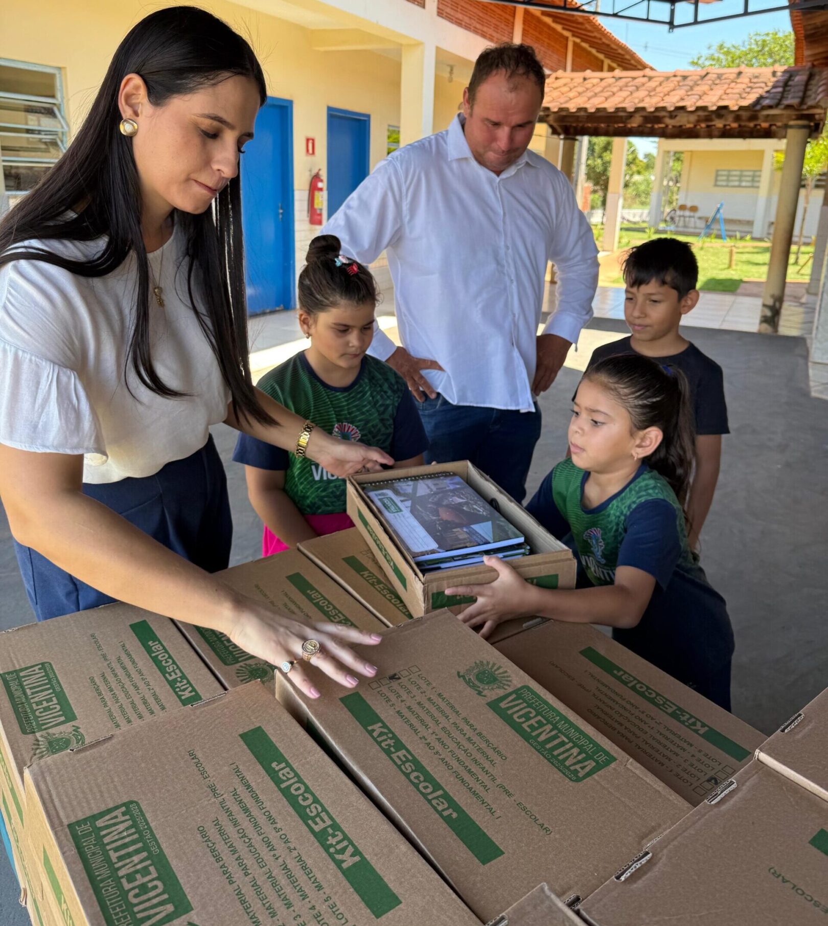 Numa demonstração de prioridade absoluta com Educação, a Prefeitura de Vicentina começou a entregar nesta semana material escolar personalizado para estudantes da Rede Municipal de Ensino. O compromisso da nova gestão com a Educação e o futuro proporciona momentos de encantamento e admiração da criançada com os novos materiais de aprendizagem.