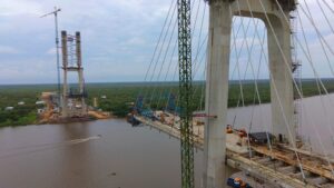 Seguindo um corredor rodoviário pelo Estado, a rota de integração chega a Porto Murtinho (MS) em direção ao Paraguai. Lá está sendo construída a ponte binacional, que liga a cidade sul-mato-grossense a Carmelo Peralta (PY). A estrutura já está com 80% dos trabalhos concluídos, com mais de 400 trabalhadores atuando no canteiro de obras.