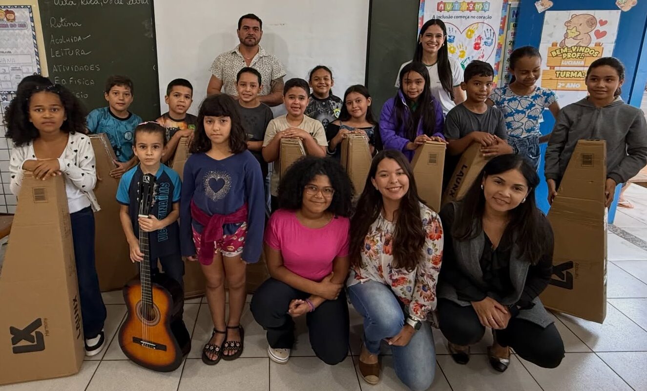 Para tornar esse sonho ainda mais real, foram entregues violões novos para o desenvolvimento do projeto, incentivando o talento e a cultura desde cedo.