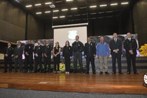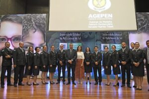 “Como gestores atuamos para o fortalecimento do trabalho da Polícia Penal, necessária para o bom funcionamento do sistema, e que foi criada recentemente ganhando força, identidade, capacidade de operação. Ao longo do tempo, nós vamos fortalecer cada vez mais esse sistema porque a sociedade precisa”, disse o governador Eduardo Riedel, que participou da solenidade.