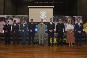 Com contribuição significativa para o fortalecimento da instituição e aperfeiçoamento das políticas penitenciárias no Estado, foram homenageadas 65 pessoas – 39 policiais penais e 26 autoridades civis e militares, inclusive a primeira-dama do Estado, Mônica Riedel, e o secretário Rodrigo Perez (Segov).