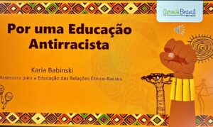 Educação antirracista – Um das principais abordagens na abertura para professoras e professores da Rede Municipal de Ensino de Jateí foi a educação antirracista, de combate a todos os tipos de preconceito e de respeito às diferenças. A oficina contra a discriminação foi coordenada pela professora mestre Karla de Souza Babinski, do Sistema Aprende Brasil. A formação contempla a lei n.11.645/2008, de promoção de uma educação antirracista, multicultural e reconhecer a contribuição da diversidade étnica na construção da identidade nacional.