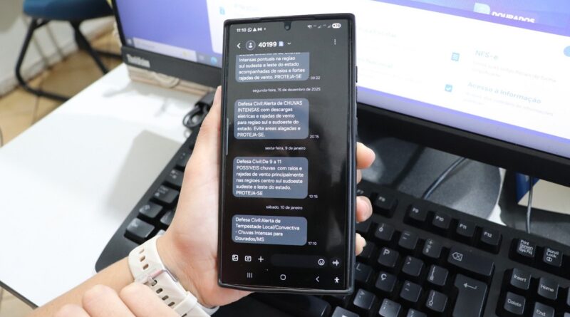 Os alertas podem ser emitidos tanto pela Defesa Civil estadual, com sede em Campo Grande, quanto pela Defesa Civil municipal de Dourados, conforme a situação registrada. O órgão destaca ainda que o serviço não substitui a previsão do tempo. As mensagens são enviadas apenas quando há identificação de cenários que exigem atenção especial ou a adoção de medidas preventivas, funcionando como um instrumento de proteção e segurança para a população.