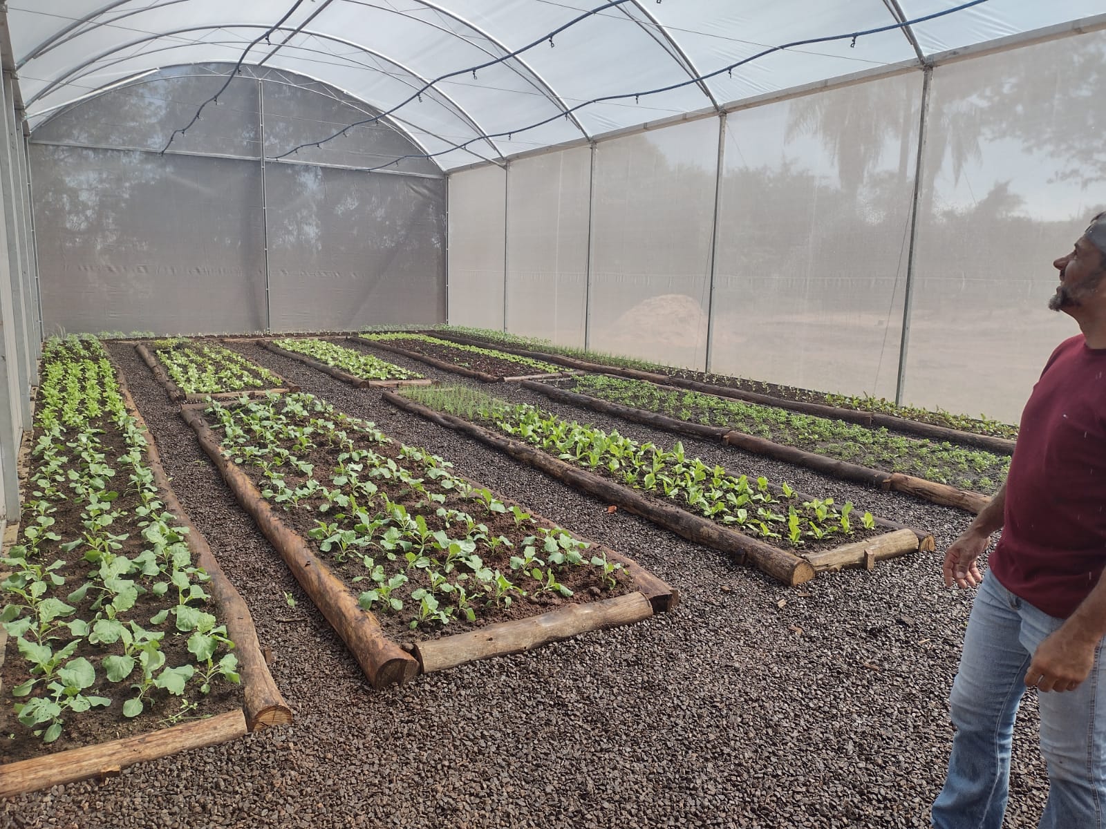 Em Jateí, nova estufa no Sítio Ecológico já produz hortaliças para consumo das escolas