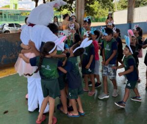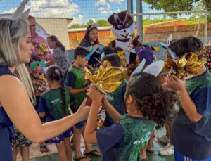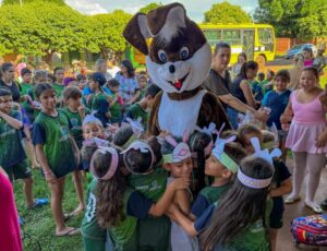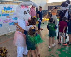 A entrega dos ovos de chocolate promovida pela nova gestão levou alegria e afeto às crianças, que se encantaram também com os bonecos fantasiados de coelho, que acompanharam as entregas nas unidades de ensino da sede do município e dos distritos de Vila Rica e São José, no centro terapêutico de apoio à pessoa autista e também na Apae.