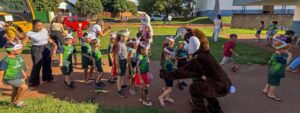 Bonecos fantasiados de coelho encantaram a criançada em Vicentina, que retribuíram distribuindo muito carinho