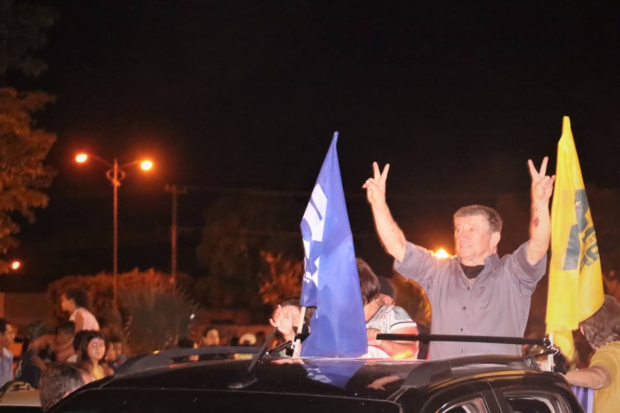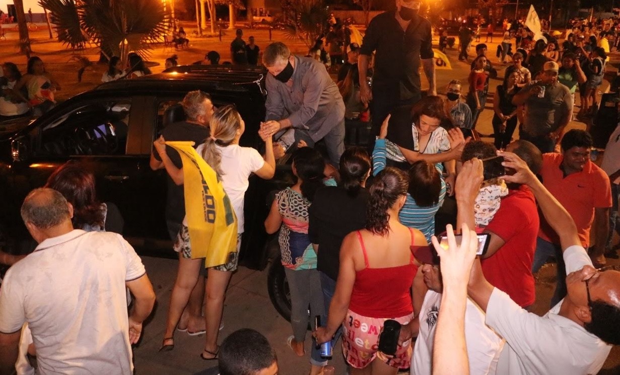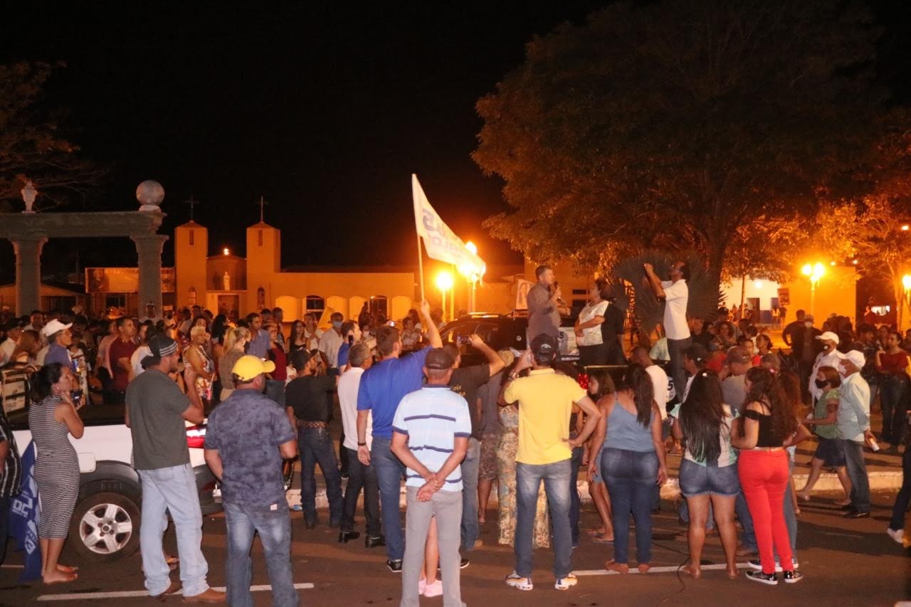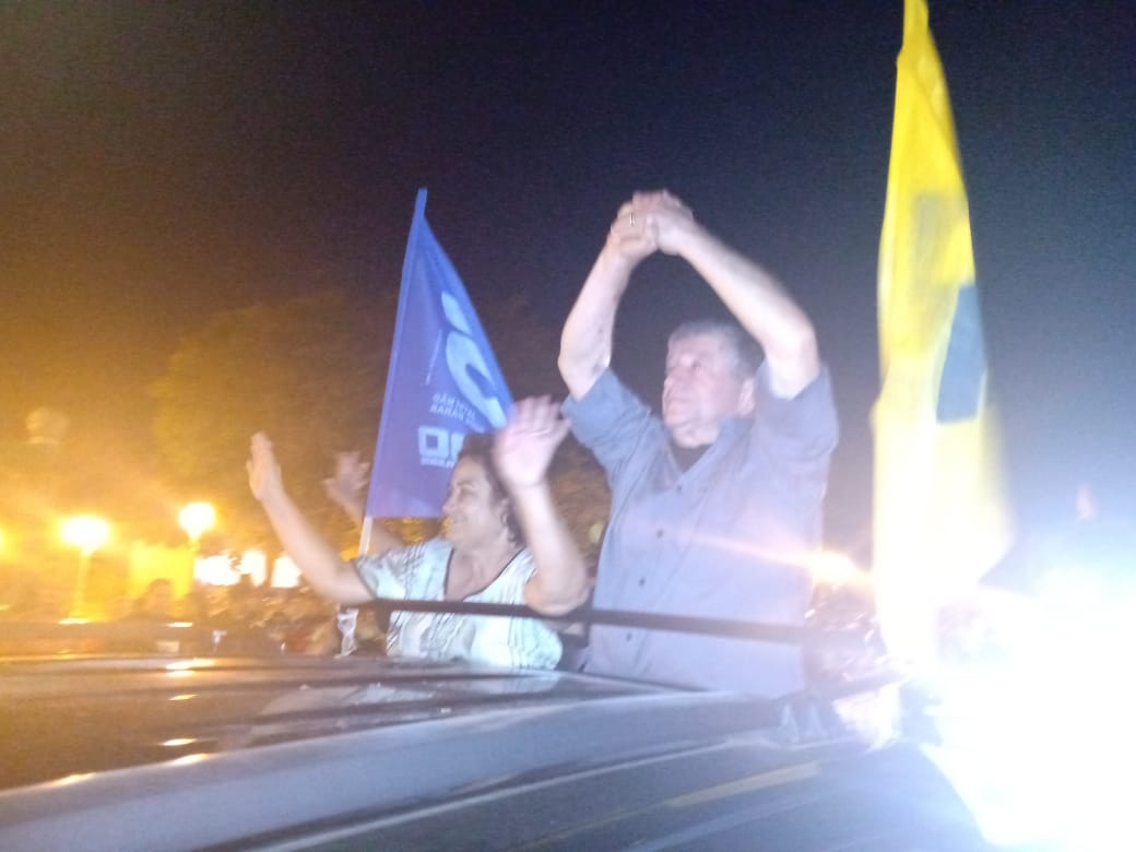 Antes da concentração na praça, uma grande e sonora carreata percorreu as principais vias da cidade. O comboio motorizado saiu da casa do prefeito reeleito, de onde foi retirado para ser “entregue nos braços do povo”, conforme a coordenação de sua campanha. Uma camiseta também foi bordada com os dizeres “todos tentam, mas só Eraldo é penta”, numa alusão ao quinto mandato de prefeito conquistado por Eraldo Leite.