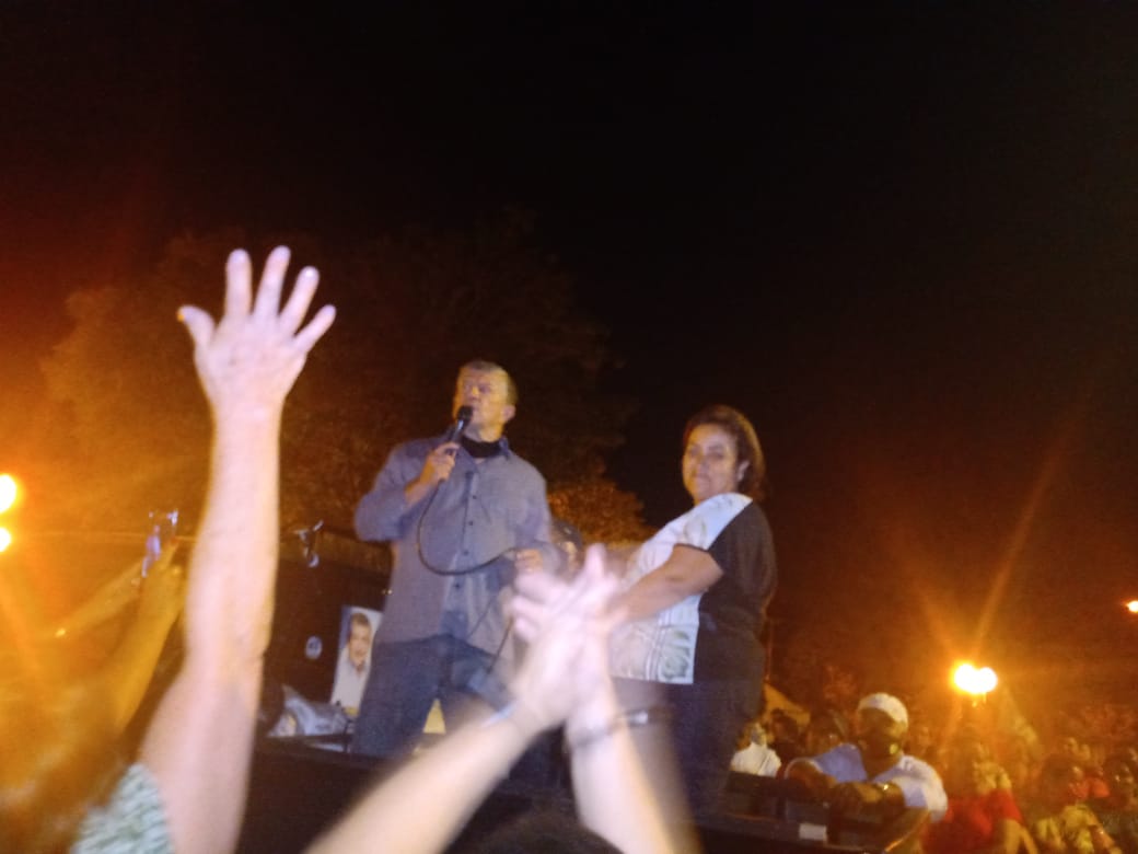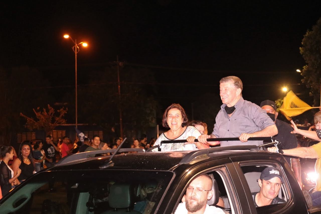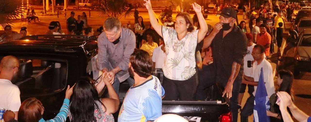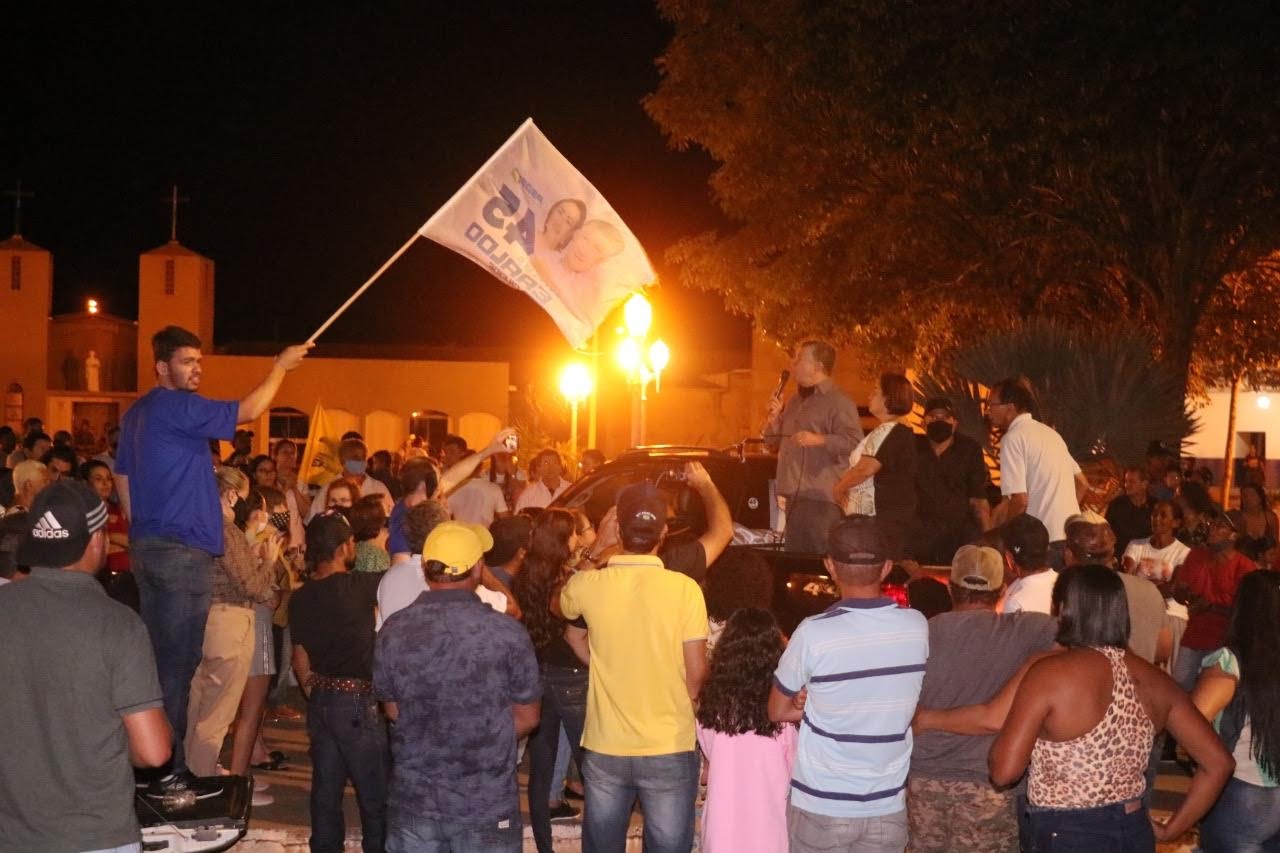 Antes da concentração na praça, uma grande e sonora carreata percorreu as principais vias da cidade. O comboio motorizado saiu da casa do prefeito reeleito, de onde foi retirado para ser “entregue nos braços do povo”, conforme a coordenação de sua campanha. Uma camiseta também foi bordada com os dizeres “todos tentam, mas só Eraldo é penta”, numa alusão ao quinto mandato de prefeito conquistado por Eraldo Leite.