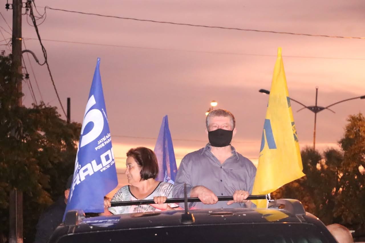 Uma grande festa popular nas ruas e Jateí marcou a reeleição do prefeito Eraldo Jorge Leite e de sua vice, Cileide Cabral de Brito, ambos do PSDB. Eraldo entra para a história como único prefeito a conquistar cinco mandatos. A maior concentração de pessoas aconteceu na praça central da cidade, onde agradeceu o carinho da população e reafirmou o compromisso de mais quatro anos de muito trabalho por Jateí e sua gente. Eraldo foi reeleito com 68,20% em Jateí, conquistando 2.231 votos, contra 1.139 dados ao atual vereador Denilson “Borracha” Ramos, do PDT. A chapa liderada por Eraldo também elegeu sete dos nove vereadores da Câmara Municipal.