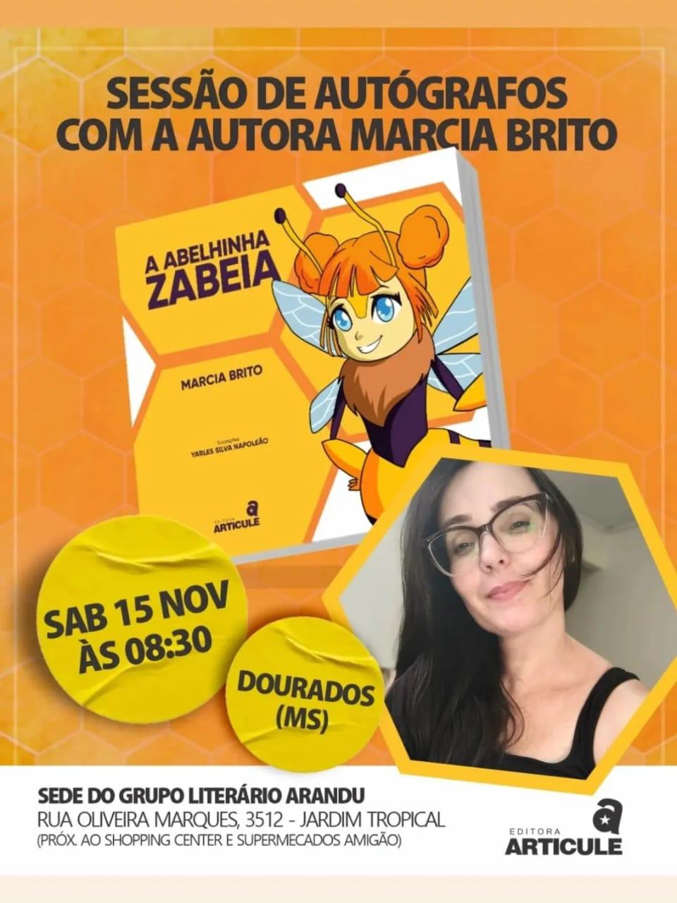 A manhã de autógrafos do livro infantil “A Abelhinha Zabeia” será na sede do Grupo Literário Arandu (Rua Oliveira Marques, 3512 – Jardim Tropical) e promete ser mais do que uma simples sessão de autógrafos, mas sim um verdadeiro Café Literário, combinando a doçura da poesia com o sabor de um café da manhã especial.