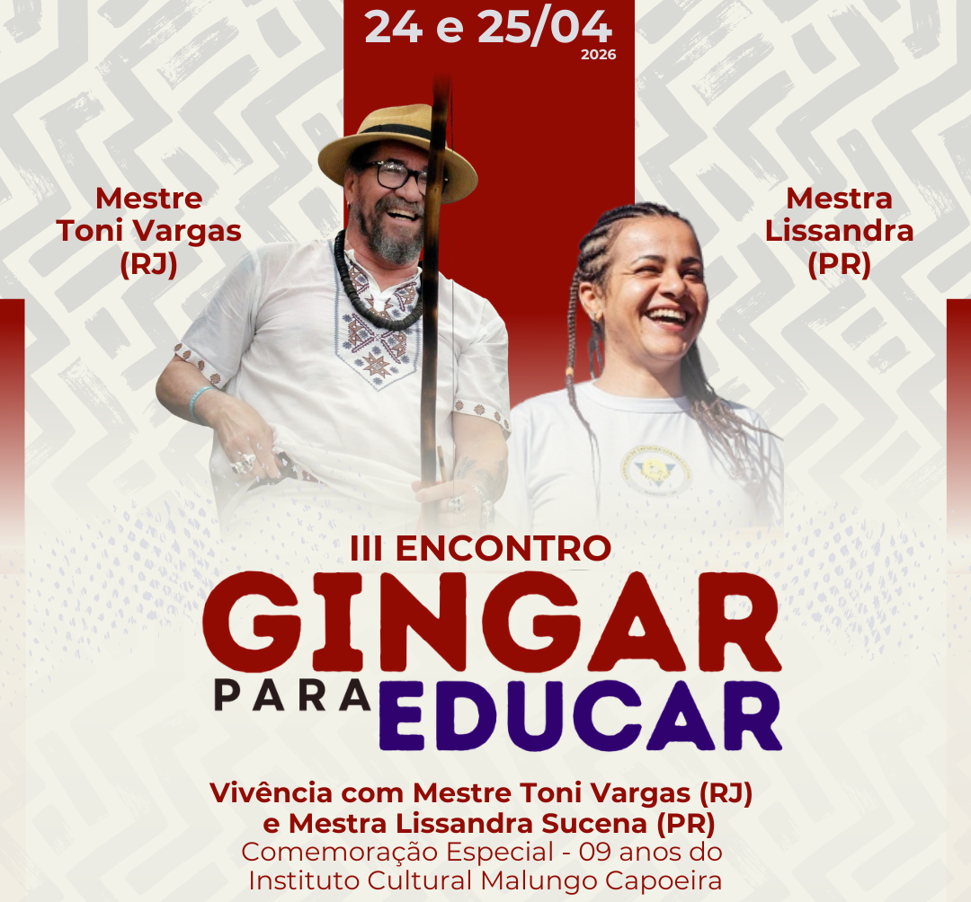 O município de Dourados será palco da terceira edição do Encontro Gingar para Educar, promovido pelo Instituto Cultural Malungo Capoeira. O evento, que acontece nos dias 24 e 25 de abril de 2026, a partir das 19h, integra as ações formativas do projeto desenvolvido em escolas públicas e marca a comemoração especial dos 09 anos de atuação do Instituto, consolidando sua trajetória na promoção da cultura afro-brasileira e na formação cidadã.