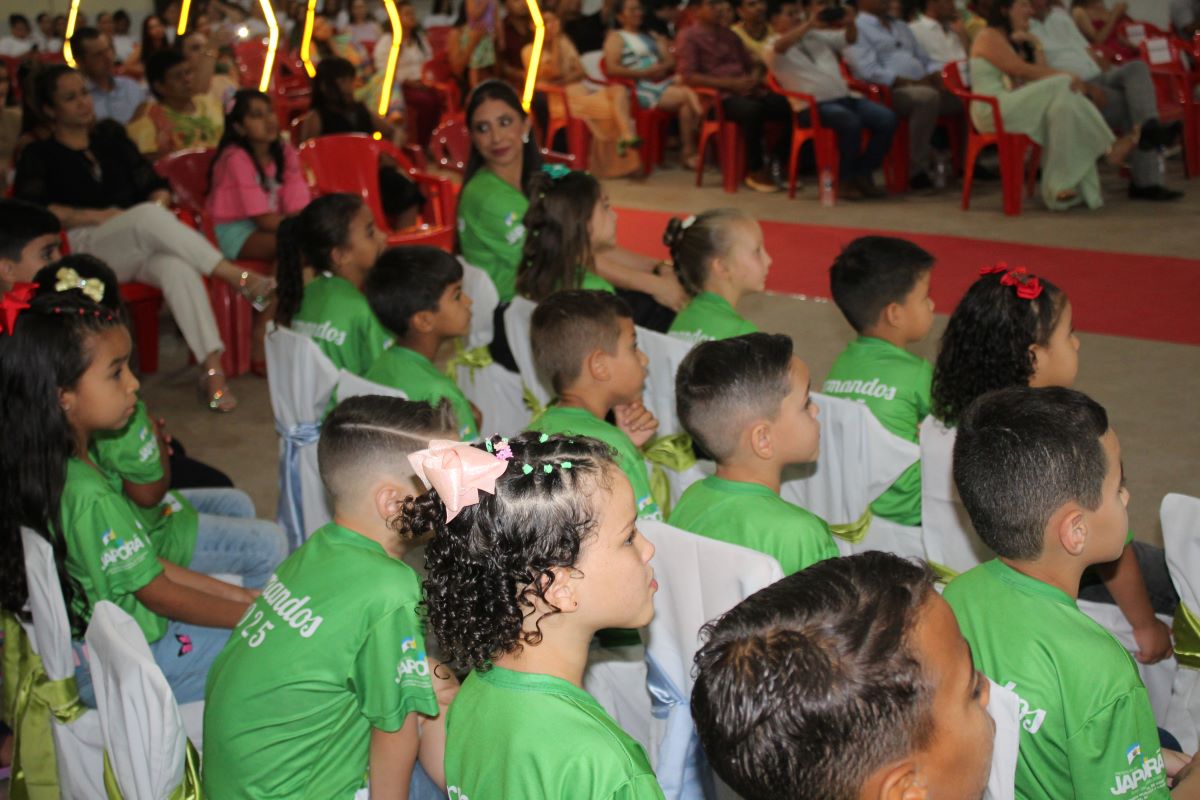 A cerimônia ocorrida noite de quinta-feira (04-12), no Salão Paroquial de Japorã, vai ficar marcada na memória dos alunos que frequentaram o pré-escolar no Centro de Educação Infantil “José Joaquim de Brito” em 2025. Inicialmente, por terem concluído com êxito o “Pré II”. Posteriormente, porque cada um dos 24 alunos receberam os seus diplomas e, principalmente, foram contemplados com um presente de Natal, entregues pelas autoridades do município.