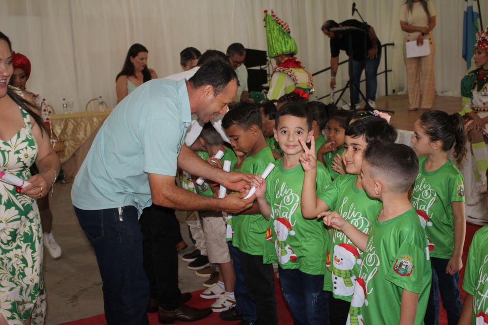 A Secretaria Municipal de Educação e os educadores deixaram a seguinte mensagem: “Encerramos hoje mais um ciclo especial, marcado por descobertas, desafios superados, sorrisos compartilhados e muitos aprendizados. Vivemos juntos experiências inesquecíveis, que encheram nossos dias de encanto e significado. Desejamos que cada criança tenha aproveitado essa linda jornada pelo universo da imaginação, onde cada história, brincadeira e atividade trouxe novas possibilidades de sonhar e aprender. A vocês, pequenos estudantes, que tanto ensinamos, mas de quem também tanto aprendemos, deixamos nosso mais profundo carinho e gratidão. Aos pais e responsáveis, agradecemos pela confiança depositada em nosso trabalho, por nos permitirem cuidar, orientar, ensinar e, sobretudo, crescer ao lado de seus filhos. Com eles, redescobrimos diariamente o valor da simplicidade, da pureza e da esperança que só a infância é capaz de revelar. Concluímos mais um ano com o coração tranquilo e preenchido pela certeza do dever cumprido, levando conosco a convicção de que tudo o que fazemos só é possível quando há um valor maior guiando cada passo: o Amor”.