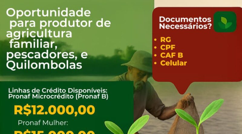A Prefeitura de Vicentina, por intermédio da Secretaria Municipal de Desenvolvimento Agrário, convida todos produtores da agricultura familiar para participar do mutirão do Pronaf B. “O atendimento será realizado para analisar e contemplar famílias interessadas no Microcrédito Produtivo Orientado “, informa o secretário Pedro Ferreira.