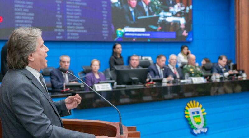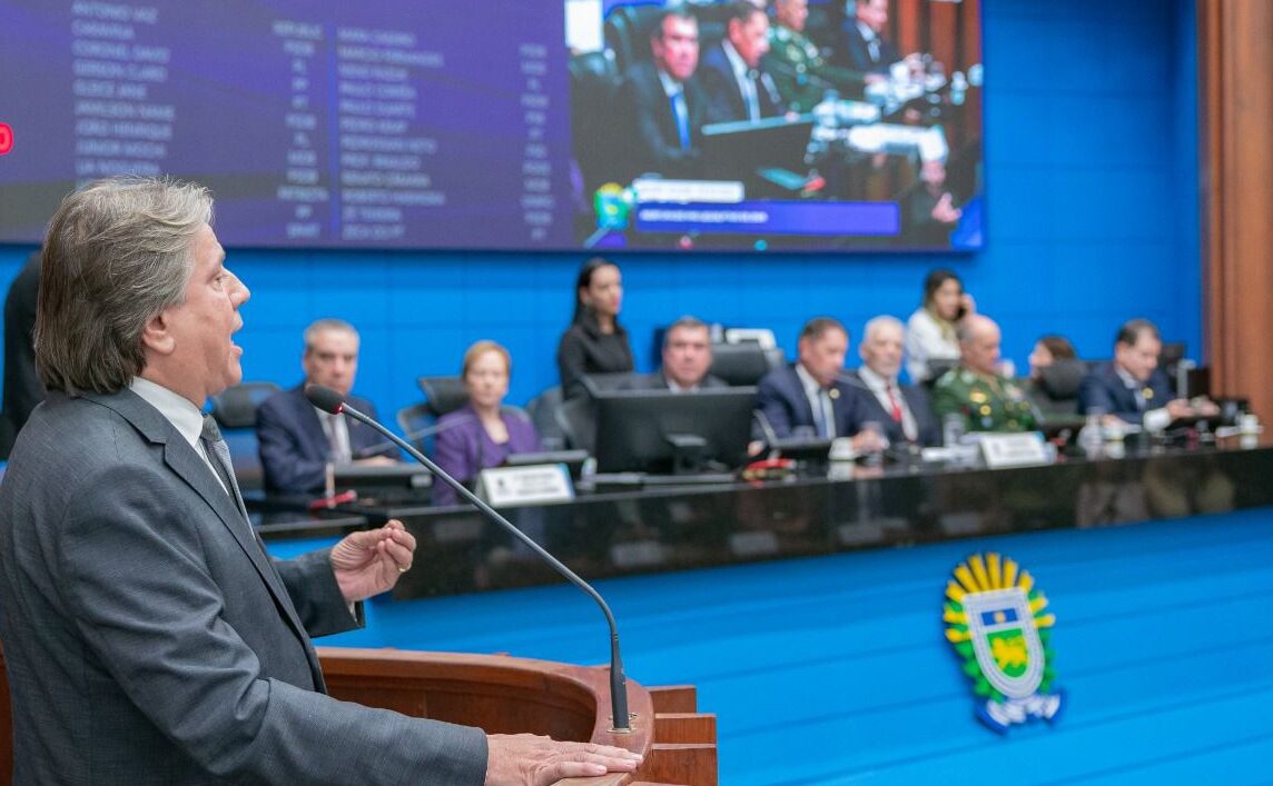 O deputado estadual Caravina utilizou a tribuna da Assembleia Legislativa de Mato Grosso do Sul durante a sessão solene de abertura dos trabalhos legislativos de 2026 para reforçar a necessidade de fortalecimento de investimentos nas áreas de segurança pública, saúde e infraestrutura.