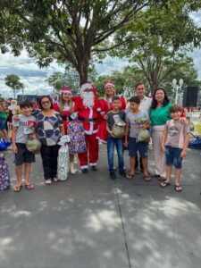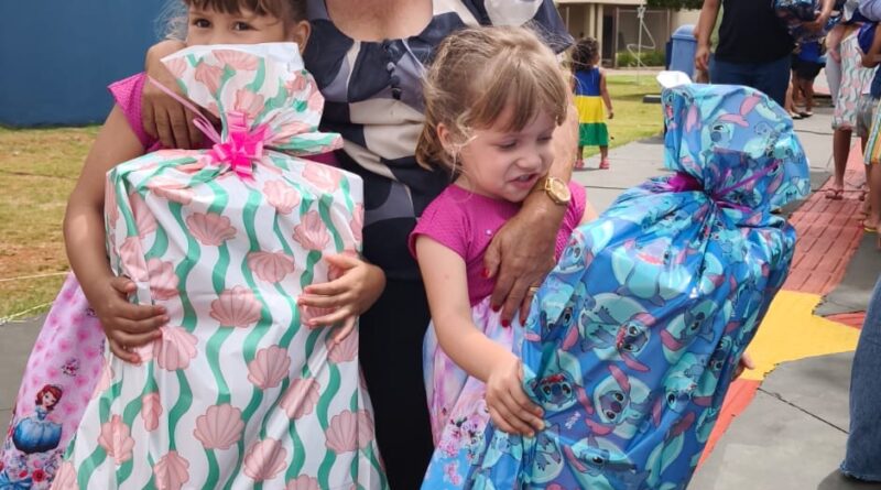 A entrega de presentes às crianças faz parte da programação do Natal de Luz 2025, cuja programação se encerra em 20 de dezembro.