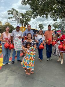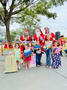 A entrega de presentes às crianças faz parte da programação do Natal de Luz 2025, cuja programação se encerra em 20 de dezembro.
