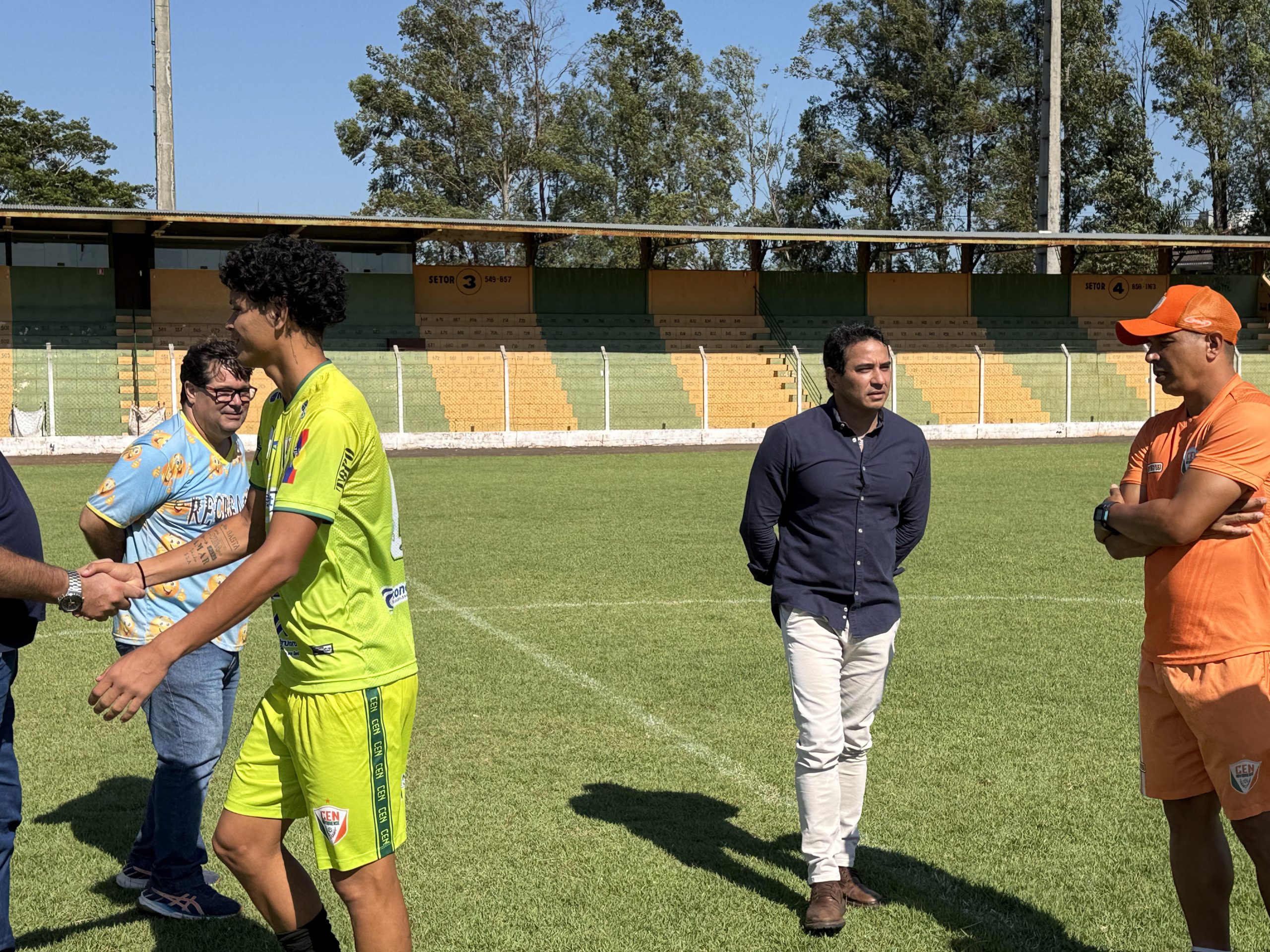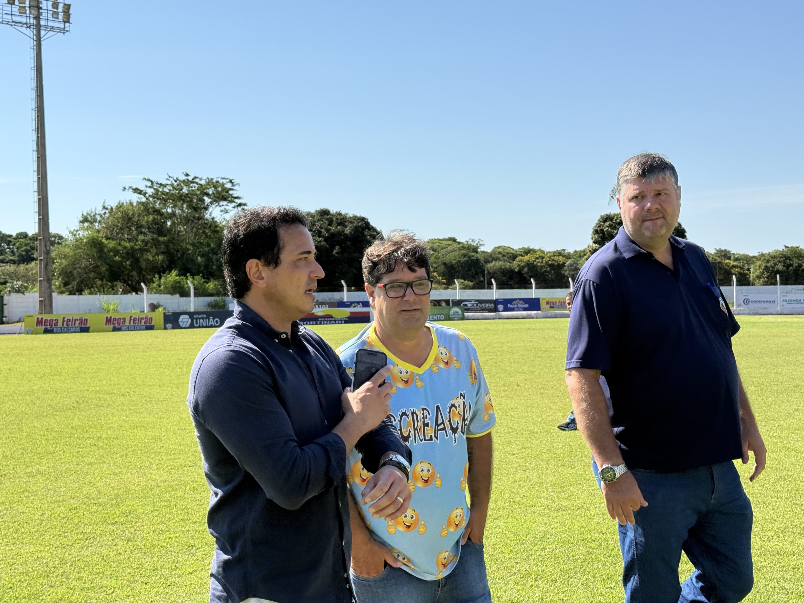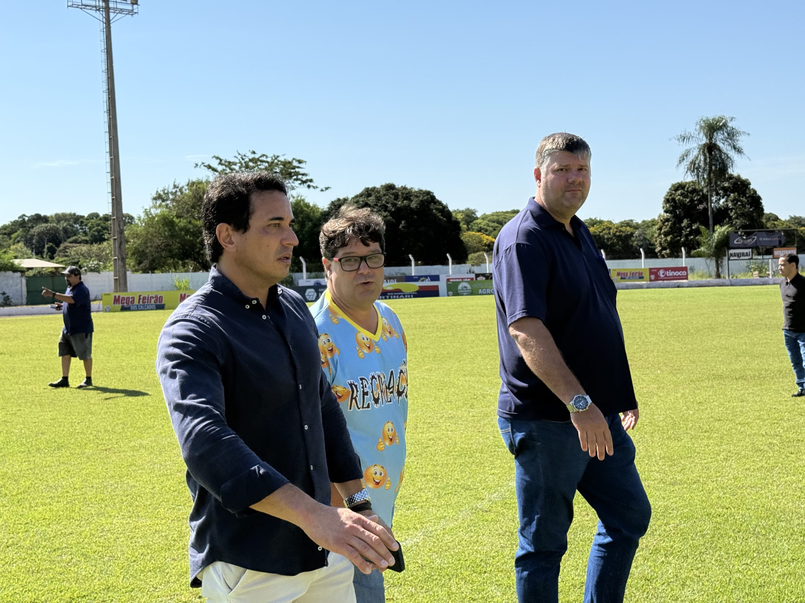 O prefeito de Naviraí, Rodrigo Sacuno, acompanhado pelo gerente municipal de Esporte e Lazer, Kerginaldo Miranda (Kejão) e Leandro “Zigão” vistoriou, na manhã de hoje (13-01), o Estádio Municipal José Cândido dos Santos Virote – Virotão. O Chefe do Executivo foi ver de perto as condições do estádio para o início dos jogos do CEN, representante de Naviraí no Campeonato Estadual – Série A 2025.