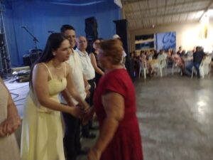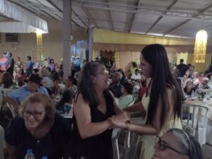 A primeira-dama Érica Cordeiro Bezerra Dias e o prefeito Cléber Dias da Silva fizeram questão de expressar a satisfação de ver tanta gente juntas para celebrar a vida e seus momentos felizes. Ao lado do prefeito Clóvis Nascimento e da primeira- dama Marilza Araújo Nascimento (Taquarussu) e da prefeita Cileide Cabral e do vice Tiquinho (Jateí), os anfitriões Cléber e Érica  saudaram os presentes e deram as boas vindas à Vicentina.