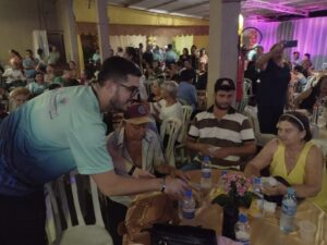 Prefeito Cléber saudando as pessoas na Noite Dourada de Vicentina, que foram recebidas com muito afeto e carinho