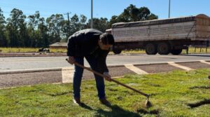Ação da gestão no trevo melhora visual, dá mais segurança e combate a erosão