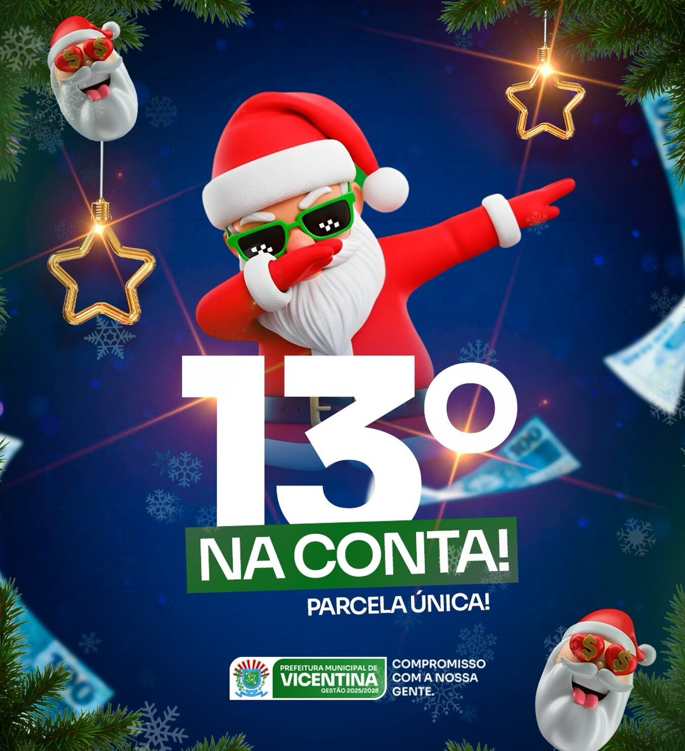 Neste dezembro de 2025, a Prefeitura de Vicentina vai fazer o pagamento de duas folhas salariais, uma vez que o prefeito Cléber Dias da Silva tem o compromisso de quitar a folha salarial do funcionalismo dentro do mês trabalhado.