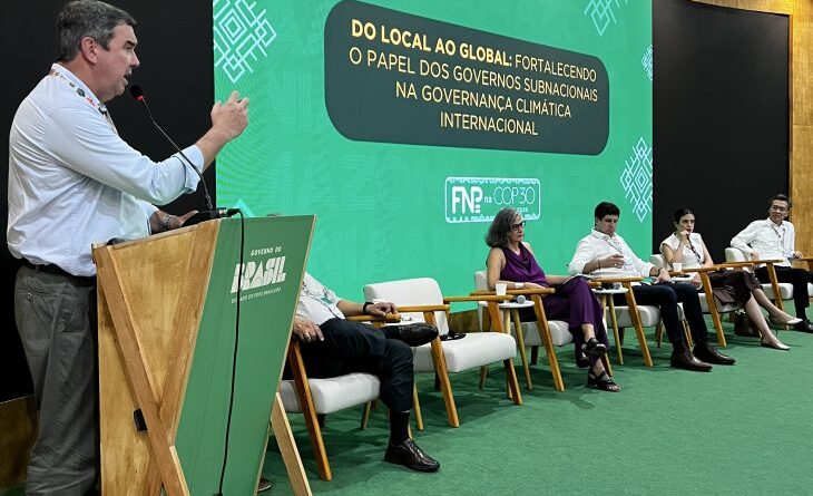 “Nunca entendemos que fosse um paradoxo o crescimento, o desenvolvimento e a manutenção de atividades de baixo carbono, a preservação da nossa biodiversidade”, frisa Riedel durante sua participação em painel realizado no espaço da FNP (Frente Nacional dos Prefeitos), son o tema ‘Fortalecendo o papel dos governos subnacionais na governança climática internacional’. Horas antes, Riedel já tinha participado do Café na Amazônia – Encontro de Governadores na COP30, promovido pelo governo paraense, anfitrião da Conferência.