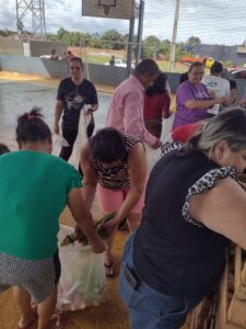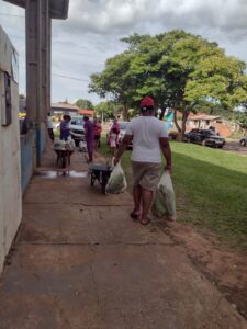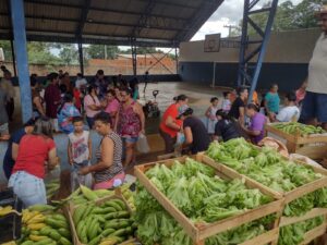 Na primeira etapa, os alimentos recebidos foram entregues para mais de 100 famílias necessitadas na sede do município. Ao todo, cerca de 300 famílias receberam alimentos frescos para suas casas, com o carimbo de mãos que trabalham para tirar da terra o seu sustento e para alimentar outras famílias.