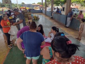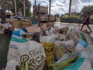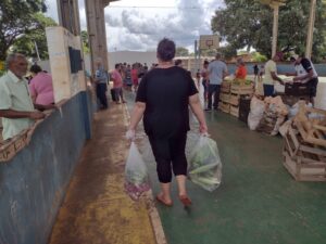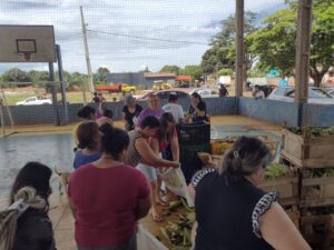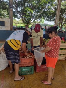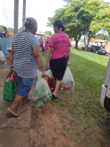 Batata doce, banana, milho, mandioca, alface, repolho, giló e abóbora compuseram a cesta de alimentos, carregados em recipientes fornecidos pela Assistência Social. De forma organizada e em fila, o que se via eram braços estendidos e semblantes de satisfação de todas as partes envolvidas.