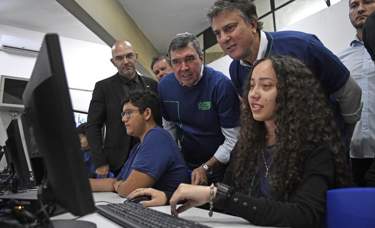 O governador Eduardo Riedel mostrou para o ministro da Educação, Camilo Santana, o trabalho desenvolvido na Escola Estadual Lúcia Martins Coelho – que fica no centro de Campo Grande (MS) –, que atende 360 estudantes do Ensino Médio.