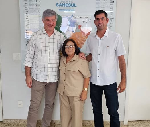 A prefeita Cileide Cabral da Silva Brito teve importante encontro com o presidente da Empesa de Saneamento de MS (Sanesul, Renato Marcílio. A reunião aconteceu na semana passada e também contou com a presença do presidente da Câmara, vereador Robson Carmo (foto).