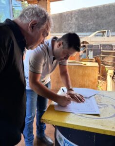 Em solenidade realizada na garagem da Prefeitura, o prefeito Cléber Dias da Silva assinou termo cedendo um trator para uso da Associação dos Pequenos Produtores do Iguassu. O presidente Claudinei Ferreira de França disse que o momento era de gratidão e reconhecimento pelo apoio que os pequenos tem recebido da atual gestão.