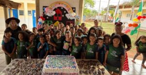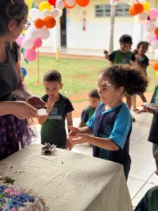 Depois das brincadeiras e da experiência única, os alunos foram recepcionados com bolo, bebidas e muito carinho para a comemoração de seu dia.