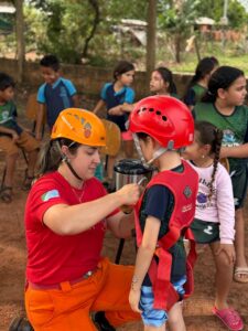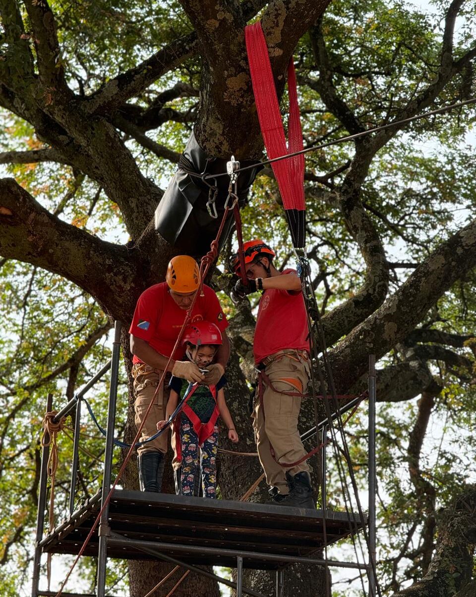 Na quinta-feira passada (8), os estudantes da escola de Vila Rica vieram uma experiência inédita em suas vidas. Os bombeiros levaram uma tirolesa, montada com toda segurança para a criançada se deliciar em uma viagem pelas cordas do equipamento.